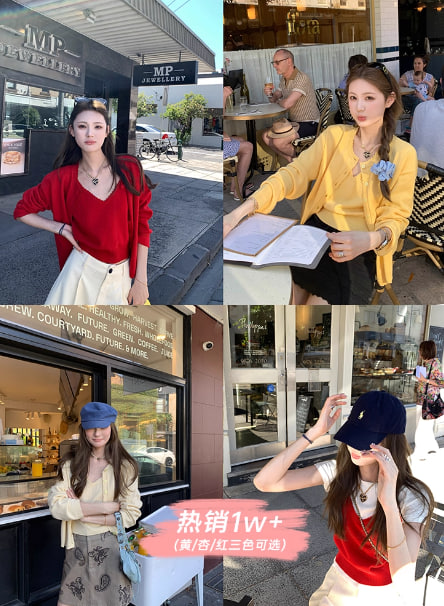 黄色羊毛针织吊带,黄色羊毛针织开衫外套,杏色羊毛针织吊带,杏色羊毛针织开衫外套,红色羊毛针织吊带,红色羊毛针织开衫外套,黄色 羊毛针织吊带,黄色
