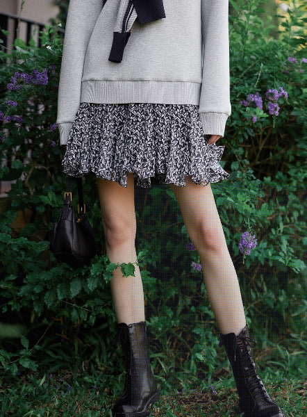 ELLE法式设计感碎花短裙女25秋季新款时尚别致伞裙小众a字半身裙